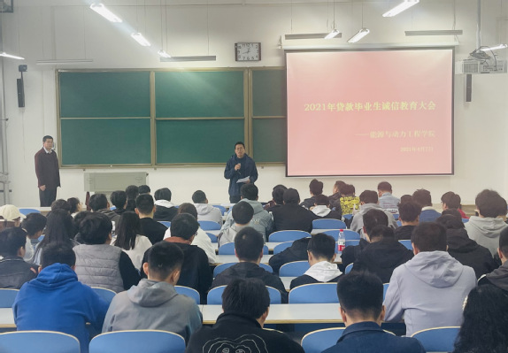 为帮助贷款毕业生了解还款流程和注意事项,增强诚信还款意识和社会责任感,4月7日中午,新葡京国际 在工程楼109召开了2021届贷款毕业生诚信教育大会。新葡京国际 党委副书记李俊丰、学工办主任宋正凯和全体2021届贷款毕业生参加了此次会议。