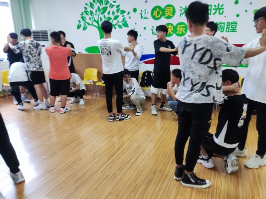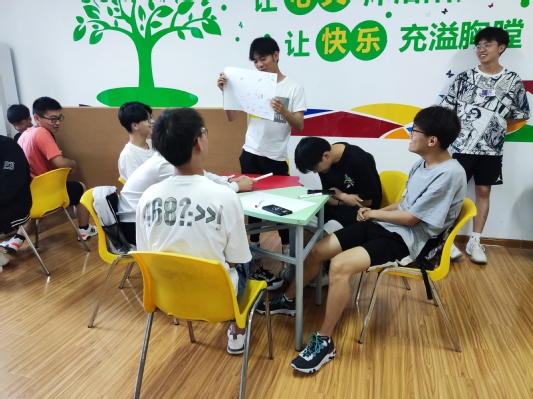 此次培训分为两个阶段进行。第一阶段以团体辅导形式进行,包括“松鼠与大树”、“共作画”两个部分。“松鼠与大树”通过不间断地交流配合,快速缩短了人与人之间的心理距离,调节了现场的氛围,起到了良好的热身效果。“共做画”要求参与者在不用语言交流的情况下,共同完成一幅画,考察参与者之间的默契程度。作品完成后,各小组成员交流了自己的作画动机,并将画作进行了分享。通过这种现场演示并亲自参与的方式,让同学们对团体辅导这种形式有了直观感受。第二阶段召开了“如何正确看待室友关系”的研讨会。沿着大学生室友关系的产生、发展和消亡时间脉络,大家研究讨论了每个阶段决定关系走向的影响因素,结合典型案例,大家分享了建立良好室友关系的经验办法。