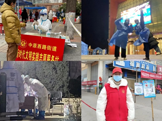 该同学家住中原区绿都城南苑,所在小区出现3例确诊病例成为管控区时,他响应号召投入到社区的防疫工作中。他在社区布置核酸检测场地、维持现场秩序,为居民们扫码读取身份信息并将信息录入系统,协助医护人员完成核酸检测工作,跟随医护人员上门给行动不便的老人服务等。每当听到小区居民们的关心与认可时,每天十个小时的细碎繁琐工作都化为动力,充分展现了当代大学生的责任感与使命感。