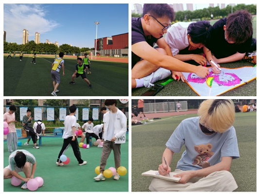 此次系列活动丰富多彩,新葡京国际 共有19个行政班级参与其中。有的班级紧随时事,反映生活,如过控2101班级的“‘罩’耀生活,驱散疫情”活动,通过手绘口罩图案表达面对疫情的积极乐观态度;能源2001班级举办的“为防疫人员作画”活动表达对特殊时期抗疫一线人员及老师们的感恩。有的班级鼓励即兴创作,动手动脑,如能源2103班举办的“信手‘粘’来”捏彩泥活动;能源2101班进行的“四巧板拼图比赛”;过控2001班级举办的“风筝绘画比赛”;新能源2001班组织的线上“手势舞”学习活动。有的班级回归童真,畅快恣意,如能源2003班进行的“砸沙包”“撕名牌”和“贴膏药”游戏;能源2006班级组织的“官兵捉贼”游戏。
