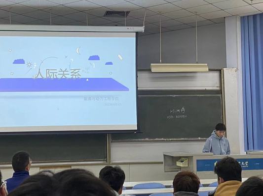 班会分三个阶段进行。首先,宋正凯介绍了召开本次主题班会的目的和意义。其次,杨莹娜、张璐瑶、江志勇三位同学先后做了汇报。杨莹娜带领同学们共同学习了人际关系的定义、内涵、分类、影响因素等重要概念,总结了多数同学们在建立良好人际关系过程中遇到的常见问题,针对问题给出了实用的解决方法,提出了构建良好人际关系所需要提升的能力,例如学会倾听、诚以待人等;张璐瑶以一组对比数据说明人际交往的重要性,阐释了人际交往的概念、类型和影响人际关系好坏的决定因素,解释了人际交往中常见的几种心理效应;江志勇重点阐述了人际关系的特点和分类。三人所讲,虽主题相同但侧重点却各有不同,相互补充相互印证,让同学们对人际关系的认识和理解更加全面和深刻。最后,宋正凯对他们的汇报进行了总结,并强调要重视建立良好的人际关系。