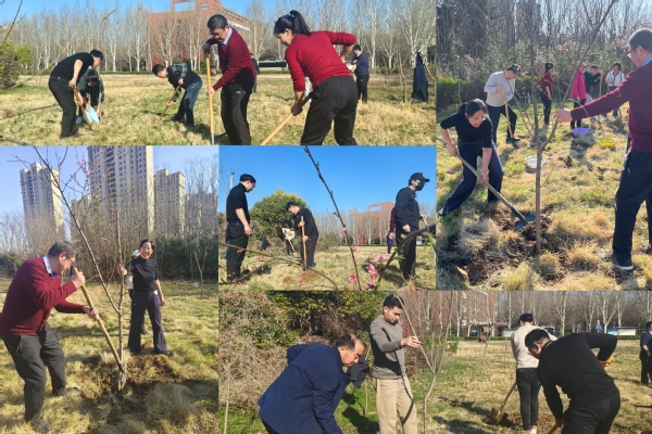 春分时节,阳光明媚。参与植树的教职工们热情高涨、干劲十足,大家分工明确、配合默契,挥锹铲土、扶树培土、浇水润苗,现场一派劳动景象,处处洋溢着团结协作、积极向上的氛围。经过辛勤劳动,师生们共栽种了二十余棵桃树苗,这些树苗在禹州实习实训基地“安家落户”,为基地春日校园增添了一抹生机盎然的风景线。