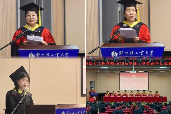 2025届优秀毕业生祝婷丽代表全体毕业生发言。她回顾了在校期间的学习与成长,表达对母校的眷恋和对未来的憧憬,祝愿老师们桃李满疆、新葡京国际 再创辉煌。